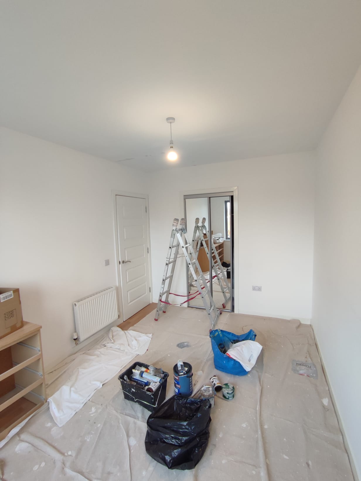 A new-build terraced property in Gracemount — a completely blank white canvas. The client wanted to move away from the builder’s standard finish and create a bedroom with real warmth and character, centred on a large-scale mural wallpaper as the focal point.